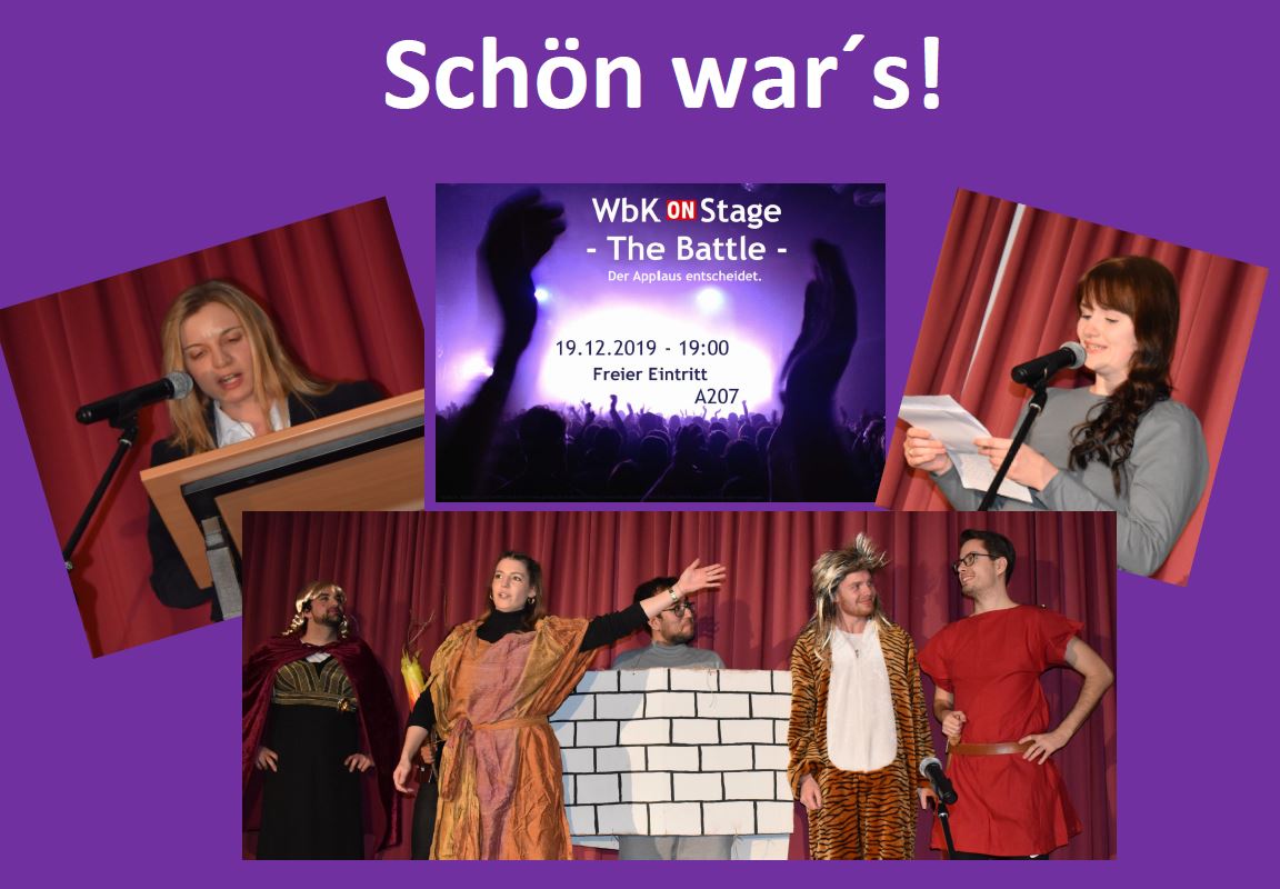 WbK On Stage geht auf die Poetry Slams zurück, die Anfang 2010 von zwei Lehrenden des WbK Bonn, Herrn Klug und Herrn Smets, ins Leben gerufen wurden.